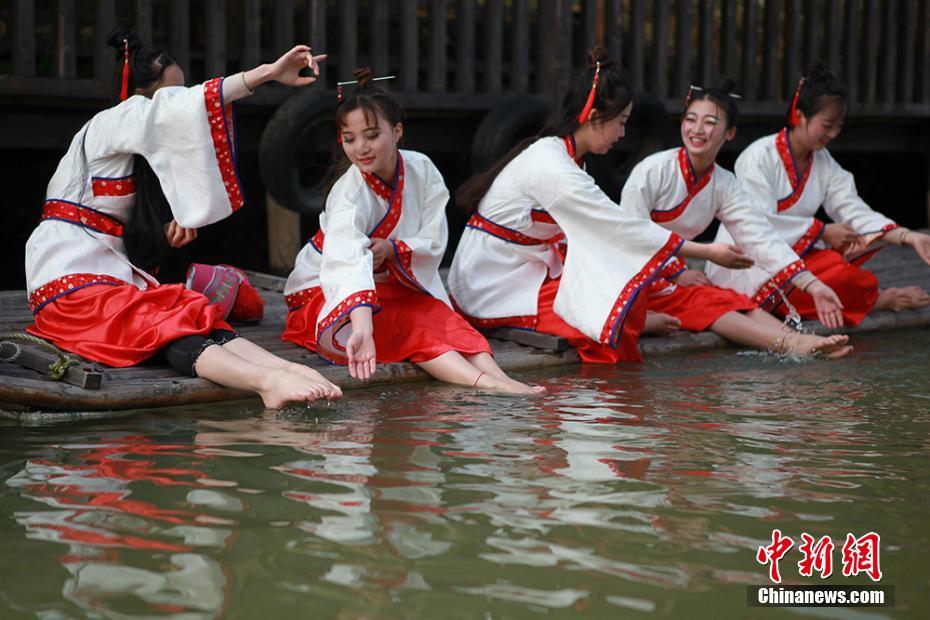 3月29日,一場重現(xiàn)中國古代春秋時期上巳節(jié)“曲水流觴、臨水浮卵、水上浮棗”風俗的活動在江蘇常州淹城春秋樂園內(nèi)上演。據(jù)記載,在上述三種水上活動中,以臨水浮卵最為古老,它是將煮熟的雞蛋放在河水中,任其浮移,誰拾到誰食之。水上浮棗和曲水流觴則是由臨水浮卵演變來的。