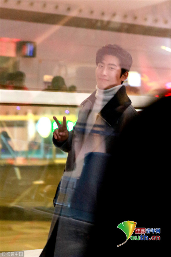 2017年12月11日,無錫,竇驍灰大衣帥氣現(xiàn)身無錫機場,見攝影師拍圖隔著玻璃比V,暖男無疑了!