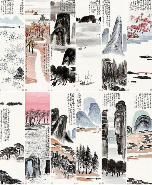 齊白石《山水十二條屏》創(chuàng)作于1925年,那一年齊白石62歲,正是他老年改變繪畫風(fēng)格的第四個(gè)年頭。他拋卻此前中國(guó)山水的程式,進(jìn)入“一洗凡塵萬(wàn)事空”的真山真水創(chuàng)作境界,這件作品幾乎囊括了齊白石所有山水畫題材,而且每屏上均題有自作詩(shī),鈐蓋齊白石常用印章,“詩(shī)書畫印”四絕俱全,堪稱其對(duì)山水創(chuàng)作升華后的集大成者。 (記者張 漫子)