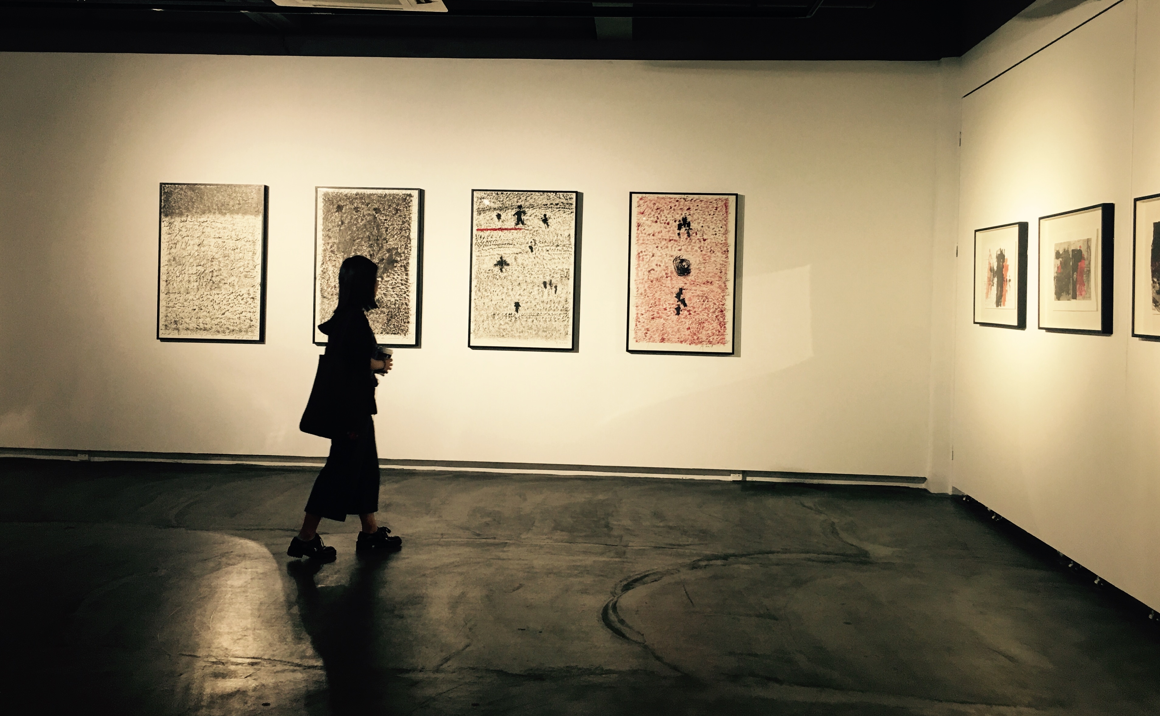 阿多尼斯的畫平靜、深邃,而又暗流涌動,光芒四射。那些騰躍于拼貼和暈染、抽象和寫意之間的效果,無論有多么率性隨機(jī)以至近乎游戲,都是那么元?dú)獬渑?,韻致飽滿,那么令人既得享酣暢淋漓的解放感,又不由自主地陷入深長的回味冥思。無論是怎樣的不拘一格,僅就色彩言,黑與紅及其不同的變奏,可以說構(gòu)成了這些作品的基調(diào)。