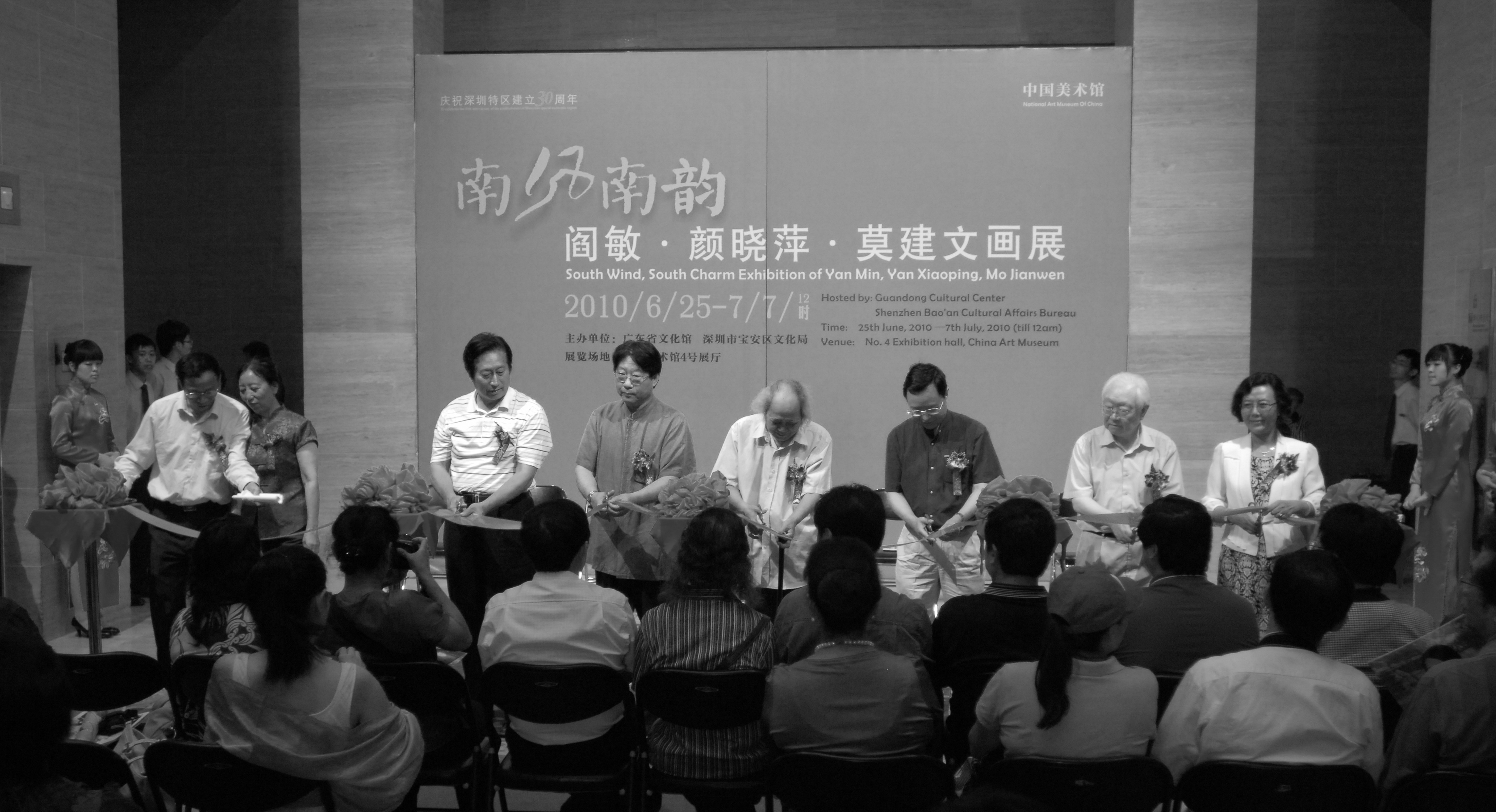 接著,談到寶安美協(xié)的發(fā)展歷程,閻敏說,要感謝美協(xié)前幾屆主席張治平、莫建文、史文集的努力,是他們?yōu)榻裉斓膶毎裁绤f(xié)的發(fā)展打下了堅(jiān)實(shí)的基礎(chǔ)。他介紹說,寶安區(qū)美術(shù)家協(xié)會(huì)成立于1993年8月,組建伊始,會(huì)員40余人,在場地、經(jīng)費(fèi)都不足的情況下,當(dāng)時(shí)的美協(xié)領(lǐng)導(dǎo)硬是創(chuàng)造條件舉辦了一系列的展覽和活動(dòng),出版了《寶安美術(shù)作品集》,擴(kuò)大協(xié)會(huì)的影響。隨后,多次成功舉辦“美麗欲望——寶安女畫家作品邀請(qǐng)展”、“綠色寶安我的家——千米長卷少兒電視書畫大賽”、“丹青鑄輝煌——寶安美術(shù)大獎(jiǎng)賽”、“走進(jìn)新時(shí)代——寶安美術(shù)大展”、“劉大為、趙振川、方楚雄畫展”、“長安畫派王西京、王有政、江文湛畫展”、“朱零畫展”、“風(fēng)情盛典——駱文冠訪歐水墨畫展”、“閑與禪——王生才新文人畫展”、“程大利師生山水畫展”、“西安明月軒收藏扇面書畫展”、本土畫家鄧榮斌畫展、吳琳陳永如山水畫展、易芳吉花鳥畫展、羅國輝張學(xué)秀畫展等諸多展事。這些展覽,在當(dāng)時(shí)都引起了較好的反響,前來觀展、索取畫冊(cè)的人絡(luò)繹不絕。客觀上,豐富了寶安居民的文化生活。尤其是在北京中國美術(shù)館先后成功地舉辦了寶安區(qū)美術(shù)書法展,莫建文、閻敏、顏曉萍畫展;在上海美術(shù)館、大連美術(shù)館、秦皇島群藝館、湛江博物館舉辦了沿海城市寶安區(qū)美術(shù)作品巡回展;在臺(tái)灣兩次舉辦深圳(寶安)藝術(shù)七人展等。有力的宣傳了寶安的文化藝術(shù)成果,很好地配合了”文化立區(qū)”的需要,收到很好的社會(huì)效果。經(jīng)過十余年的發(fā)展,寶安美協(xié)的會(huì)員由原來的數(shù)十人急劇增加,目前已逾千人,讓原本散落各處獨(dú)自為戰(zhàn)的美術(shù)作者終于有了自己的組織。不僅隊(duì)伍擴(kuò)大了,質(zhì)量也提高了。據(jù)了解,寶安區(qū)美協(xié)現(xiàn)有國家一級(jí)美術(shù)師7人、中美協(xié)會(huì)員12人、省美協(xié)會(huì)員23人,這在深圳市各區(qū)中是比較好的。閻敏說,不僅會(huì)員擴(kuò)大了,美協(xié)的組織也擴(kuò)大了。從近幾年開始,陸續(xù)成立了行業(yè)分會(huì)、街道分會(huì)。街道分會(huì)已正式掛牌的有石巖、燕羅、新橋、福永,福海、西鄉(xiāng)、沙井、松崗、航城分會(huì)也在籌備之中。行業(yè)協(xié)會(huì)的活動(dòng)中,教育系統(tǒng)發(fā)展勢頭迅猛,全區(qū)中小學(xué)美術(shù)老師近800人,是協(xié)會(huì)中的主力軍。幾年中舉辦了美術(shù)百校展、教師提名展等已成為品牌,具有很大的影響力。另外,寶安美協(xié)還狠抓了全國美展的組織工作。如十二屆全國美展,區(qū)美協(xié)集體選送了19件作品送市美協(xié),全部入選市美展,有8件作品入選省美展,有5件作品入選十二屆全國美展。