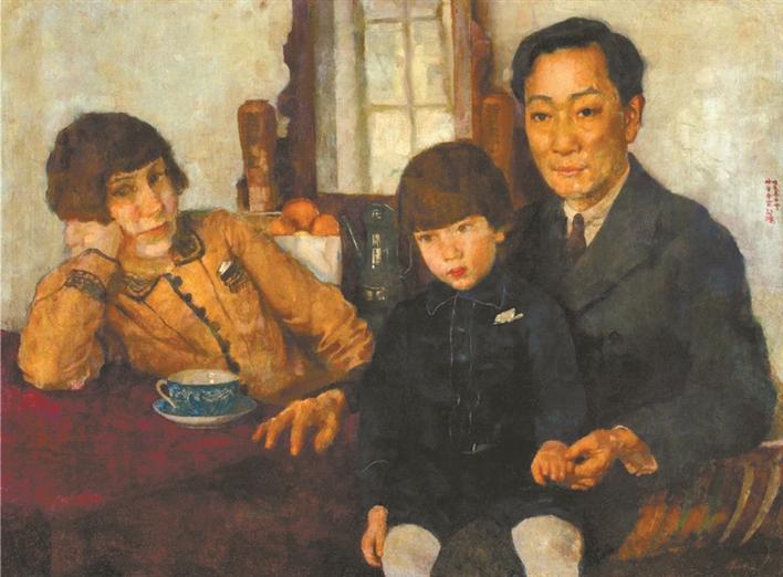 《楊仲子全家福》也是吸睛之作,它以沉靜之態(tài)吸引觀眾駐足,忍不住與畫中人對(duì)視。這是徐悲鴻的佳作,畫的是好友楊仲子一家。楊仲子是中國(guó)最早留學(xué)歐洲研習(xí)西方音樂的先驅(qū),回國(guó)后傳授西方音樂,創(chuàng)建并推進(jìn)中國(guó)音樂教育教學(xué)體制,倡導(dǎo)改進(jìn)并推動(dòng)民族音樂發(fā)展。這件創(chuàng)作于1928年冬天的作品,徐悲鴻畫出了楊仲子和妻子、孩子閑適的狀態(tài)。畫中三人神態(tài)各異,在藝術(shù)家的傳情畫筆下,觀眾似能看到他們恬淡表情之后的情緒。