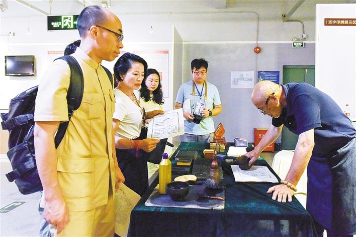 力嘉創(chuàng)意文化產業(yè)園分會場現(xiàn)場為來賓拓印文化創(chuàng)意圖案。