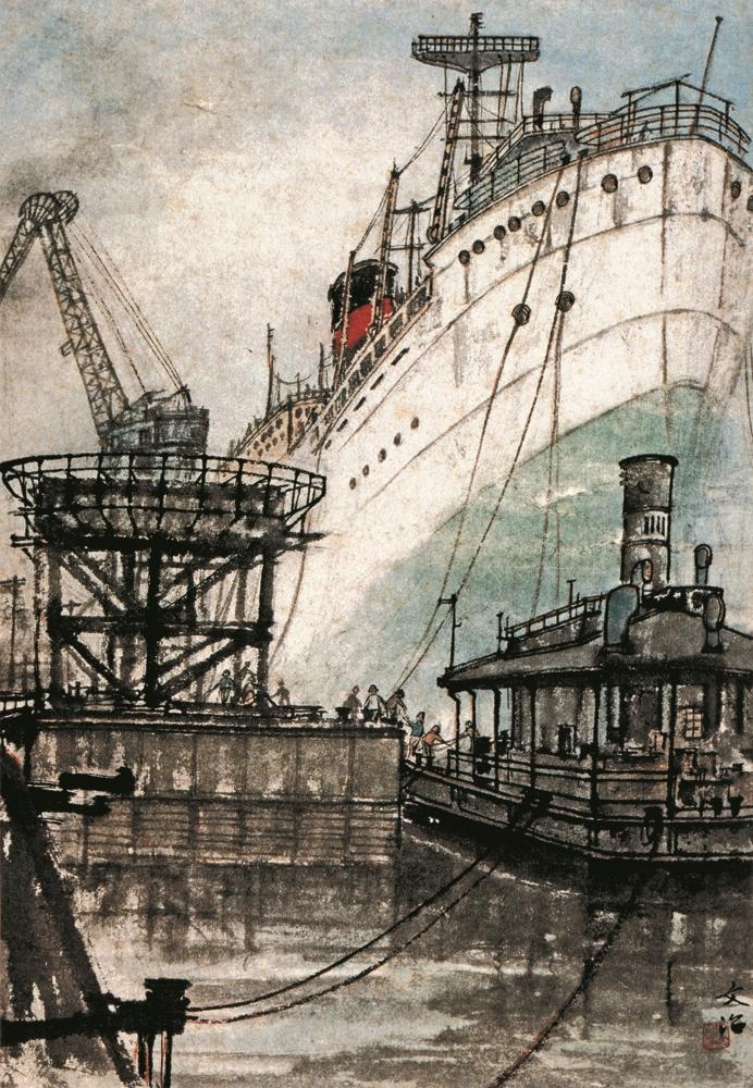 宋文治對廣東地區(qū)的關(guān)注始于20世紀的60年代。他在1960年參加江蘇國畫院組織的行程二萬三千里的寫生活動中,經(jīng)過廣州時就創(chuàng)作了《廣州造船廠》,罕見地運用山水畫技法表現(xiàn)現(xiàn)代工業(yè)題材。
