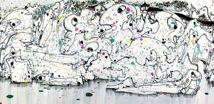 描繪蘇州四大園林之一獅子林風(fēng)景的獅子林題材是吳冠中生平最重要的藝術(shù)創(chuàng)作之一,被認(rèn)為是代表吳冠中藝術(shù)生涯承前啟后的重要杰作,囊括了他對(duì)西方與東方、傳統(tǒng)與現(xiàn)代、物質(zhì)與精神所有的理解和闡釋。從《獅子林》開始,吳冠中以點(diǎn)、線、面表現(xiàn)山川風(fēng)景的個(gè)人畫風(fēng)得以形成。此幅《獅子林》是吳冠中1988年創(chuàng)作的。2011年這幅作品就曾于保利春拍拍出1.15億元,引起不小的轟動(dòng)。另一幅更為經(jīng)典的《獅子林》收藏在中華藝術(shù)宮,是吳冠中1983年的作品。