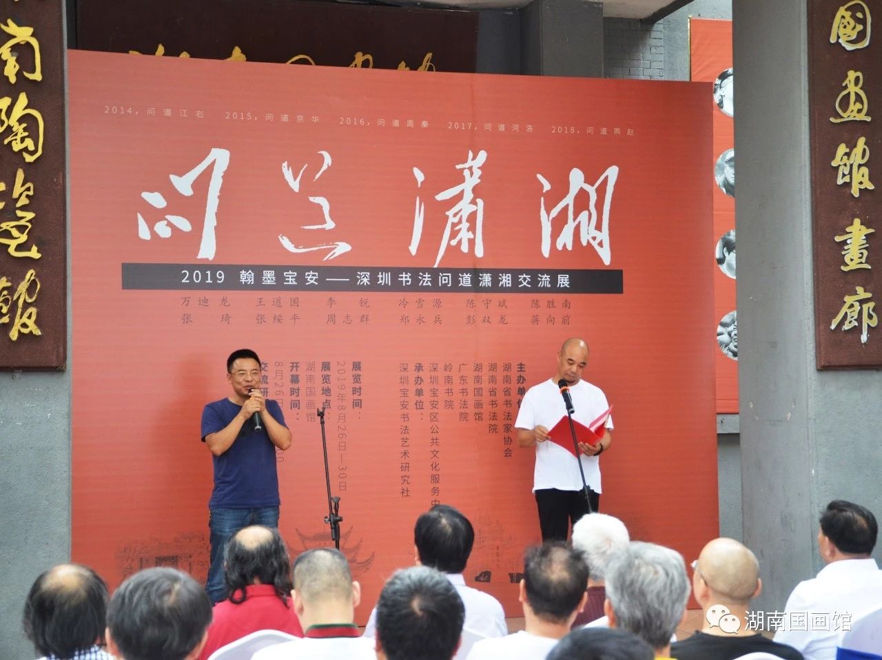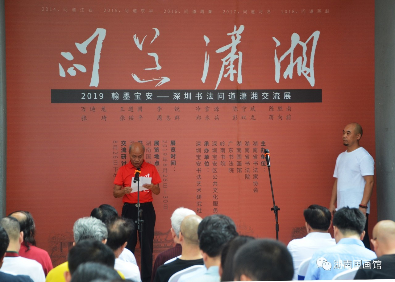 開幕式由湖南省書法家協(xié)會副主席兼秘書長胡紫桂主持,湖南省文化和旅游廳副廳長、湖南省書協(xié)主席鄢福初,湖南國畫館負(fù)責(zé)人黃作,嶺南書院院長、深圳寶安書社社長張琦分別致辭。