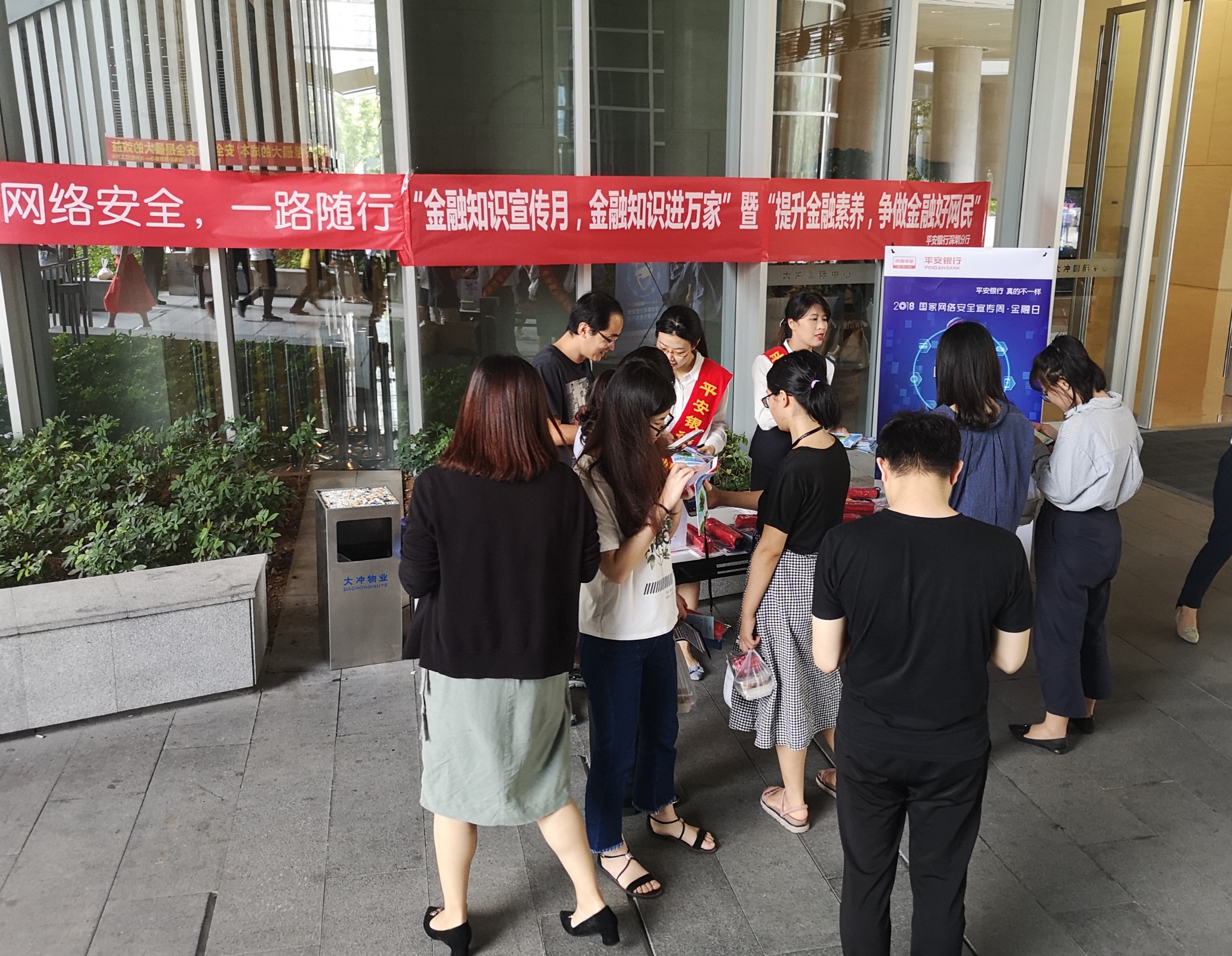 針對非法集資案件頻發(fā)的情況,9月19日中午,平安銀行深圳分行組織大沖支行在人群密集區(qū)域設(shè)點(diǎn)宣傳,工作人員以發(fā)放宣傳折頁、擺放橫幅、張貼海報(bào)等形式向公眾普及各類正規(guī)投資渠道等投資理財(cái)知識(shí),引導(dǎo)公眾合理選擇金融產(chǎn)品和服務(wù),提升防范非法金融活動(dòng)的能力,呼吁公眾遠(yuǎn)離非法集資、非法放貸、金融詐騙。此外,該行工作人員還運(yùn)用生動(dòng)的案例向公眾宣講了防范電信詐騙的技巧,提高公眾防騙意識(shí)。