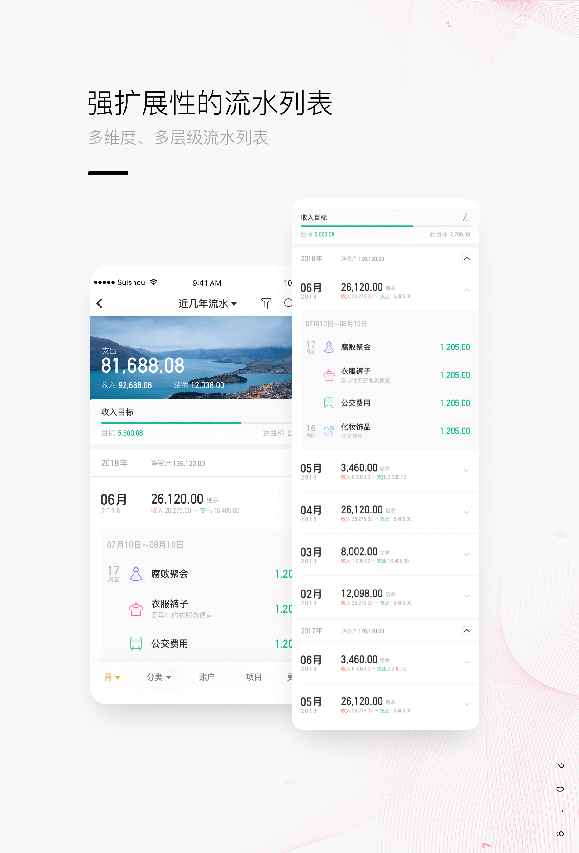 新版本還優(yōu)化了流水列表結(jié)構(gòu),凸顯層級(jí)區(qū)分,使內(nèi)容條目更清晰,向用戶呈現(xiàn)了更加直觀清楚的財(cái)務(wù)信息,方便用戶隨時(shí)掌握自己的財(cái)務(wù)狀況。