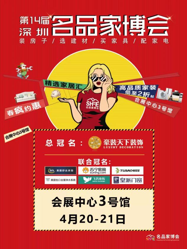 第14屆深圳名品家博會(huì)開幕在即,相信在“打造中國美居文化第一品牌”的豪裝天下裝飾集團(tuán)總冠名,并聯(lián)合蘇寧易購等四家企業(yè)的共同贊助下,4月必將為大眾呈現(xiàn)一個(gè)異彩紛呈的名品家博盛宴!