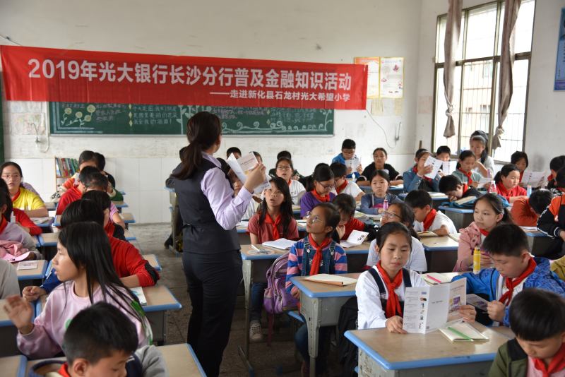 此外,近年來(lái)長(zhǎng)沙分行還積極開(kāi)展“小小銀行家”送金融知識(shí)與關(guān)懷慰問(wèn)進(jìn)山區(qū)活動(dòng),定期走進(jìn)新化縣石龍村光大希望小學(xué)、新田縣苦志育才學(xué)校,為師生們普及金融知識(shí),讓金融知識(shí)和服務(wù)在貧困山區(qū)依然能開(kāi)花結(jié)果。