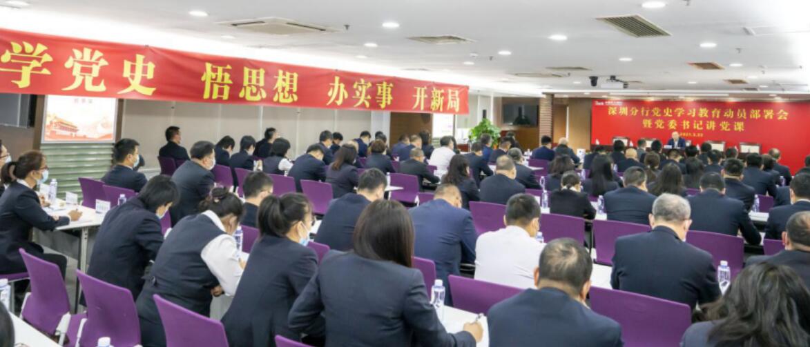 會上,韓學智對分行開展黨史學習教育作了動員部署。他指出,在建黨100周年之際,黨中央組織開展黨史學習教育意義重大、正當其時。他對分行全體員工提出六點要求:一是通過學習進一步傳承紅色基因,堅定道路自信、理論自信、制度自信、文化自信,真正做到學史明理、學史增信、學史崇德、學史力行。二是各黨支部要按照統(tǒng)一部署,迅速行動,扎實開展黨史學習教育,尤其是黨員領(lǐng)導(dǎo)干部在學黨史、講黨史、懂黨史、用黨史方面要發(fā)揮示范帶動作用。三是采取特色鮮明、形式多樣的學習教育方式,提高學習效果。四是通過學習增強為民服務(wù)意識,貫徹好新發(fā)展理念,助力破解經(jīng)營發(fā)展難題,著力服務(wù)實體經(jīng)濟,服務(wù)民生。五是通過學習落實從嚴治黨要求,通過以案促改、從嚴治行,實現(xiàn)強思想、強組織、強隊伍、強作風、強紀律。六是通過學習增強擔當精神,把學習成效轉(zhuǎn)化為工作動力和工作成效,為深圳分行開新局做出積極貢獻,以實績慶祝建黨100周年。