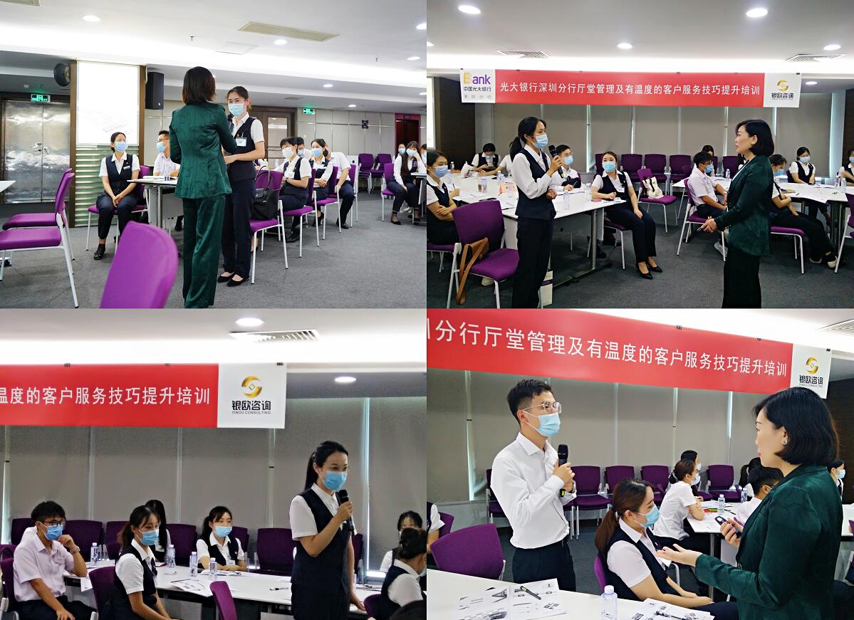 據了解,深圳分行黨委高度重視此次培訓活動,在以分行行長韓學智為班長的黨委班子的領導下,由茹瑋巖副行長牽頭主抓、分行陽光服務(消費者權益保護)辦公室精心組織。培訓通過理論教學、情景演練、互動分享等形式,將大堂經理的崗位職責、自我定位、廳堂管理,結合生動形象的案例進行深度分析。參與培訓人員紛紛表示,學習有助于知識更新,加深了對廳堂服務的理解。