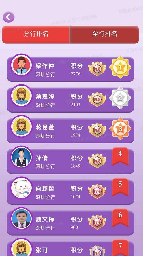 比賽由系統(tǒng)從題庫隨機(jī)抽取5道題目,并匹配在線員工進(jìn)行一對一挑戰(zhàn),考驗(yàn)員工的知識掌握情況和答題準(zhǔn)確度。根據(jù)積分情況,設(shè)置全行學(xué)習(xí)積分榜,鼓勵(lì)員工對標(biāo)學(xué)習(xí)情況,提升“知識段位”。