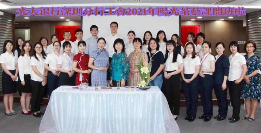 為豐富員工業(yè)余文化生活,營(yíng)造積極向上的陽(yáng)光文化氛圍,搭建培養(yǎng)員工興趣愛(ài)好和發(fā)展一技之長(zhǎng)的平臺(tái),7月21日,光大銀行深圳分行工會(huì)陽(yáng)光茶藝班在6樓會(huì)議室開(kāi)課啦。據(jù)悉,此次活動(dòng)的舉辦是對(duì)分行黨委提出的“幸福生活快樂(lè)工作”價(jià)值理念的落地實(shí)踐,也是打造、展現(xiàn)和諧家園的“家園文化”。
