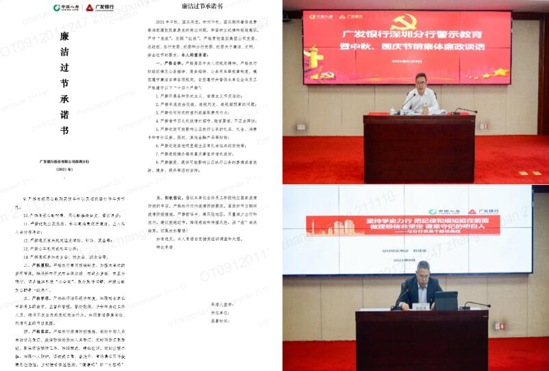 廣發(fā)銀行深圳分行開展中秋、國慶節(jié)前集體廉政談話暨警示教育