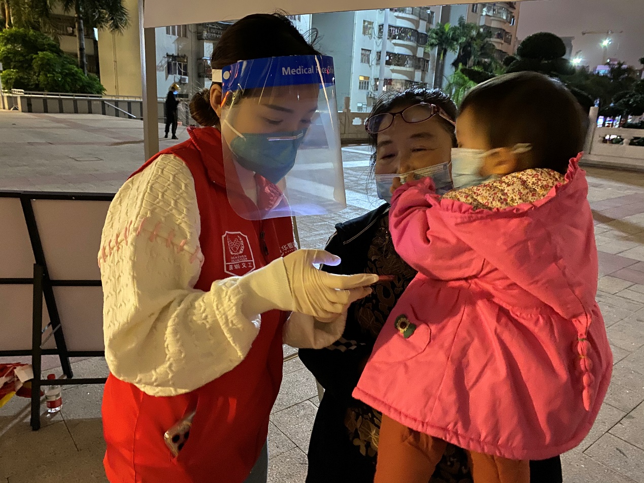 2月18日晚,寒風瑟瑟的夜里,皇崗社區(qū)核酸采樣點還排著長龍。華夏銀行深圳分行的黨員、青年團員迅速集結為“青年突擊隊”,在做好安全防護的基礎上,深入福田街道皇崗文化廣場、高發(fā)城馳廣場核酸采集點,協(xié)助防疫工作組維護現場秩序、身份信息登記等志愿服務工作,幫助社區(qū)提升核酸檢測效率。高新支行儲雨欣耐心地指導一位抱著小孩的阿姨錄入核酸檢測信息,她趕到核酸采樣點已經接近晚上8點。“剛剛從支行軋賬下班,雖然有些晚了,但我還是想來?!?/p>