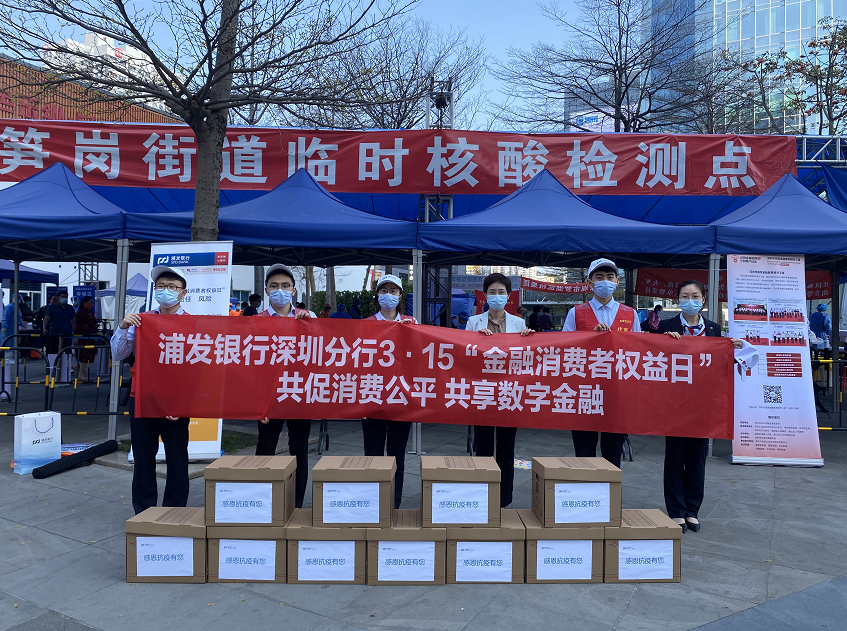 考慮到近期疫情反復(fù),浦發(fā)銀行深圳分行組織轄內(nèi)多家網(wǎng)點聯(lián)合深圳市居民金融素養(yǎng)提升工程辦公室、社區(qū)工作站,前往核酸檢測點,展開“消?!迸c“抗疫”相結(jié)合的“消保防疫關(guān)愛站”系列活動。