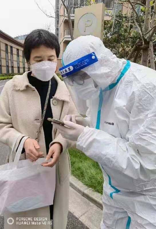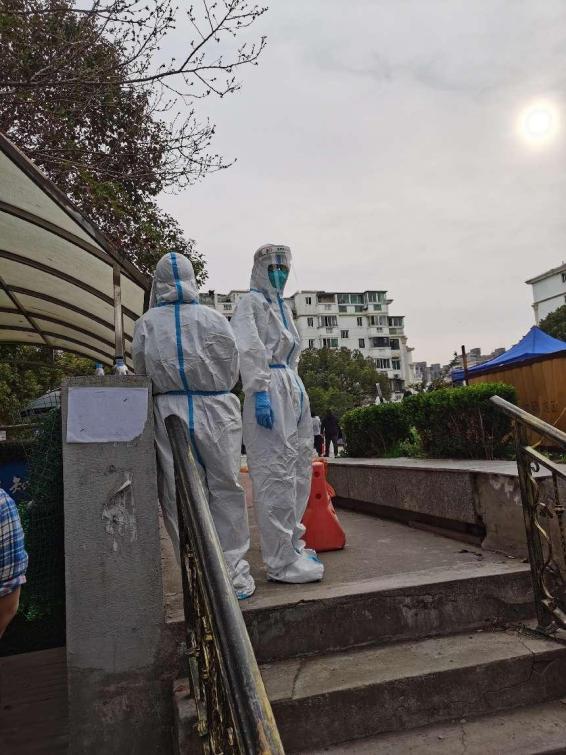 同樣化身“大白”的還有劉濮銘,他協(xié)助醫(yī)護人員對小區(qū)做抗原檢測,幫7棟樓200余老人做二維碼登記、檢測,在小區(qū)有樓棟確診后迅速加入守樓執(zhí)勤,維持秩序,防止交叉感染。
