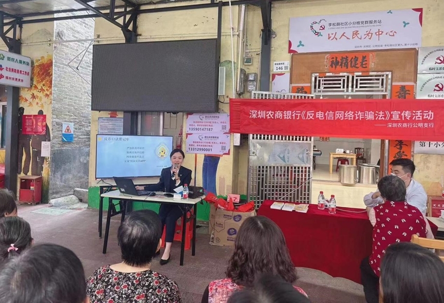 深圳農(nóng)商銀行公明支行筑牢老年金融安全防線。為增強(qiáng)老年群體風(fēng)險防范意識,幫助廣大老年人守好“錢袋子”。2024年3月,公明支行在李松蓢?yán)先嘶顒又行呐e辦主題為“警惕養(yǎng)老騙局,守護(hù)錢袋子”的反詐宣傳活動。工作人員通過PPT演示、案例演練、發(fā)放宣傳折頁、游戲互動等方式,揭示非法集資與電信詐騙的種種伎倆,讓阿公阿婆認(rèn)清騙局真相,在輕松愉快的氛圍中掌握防詐知識。
