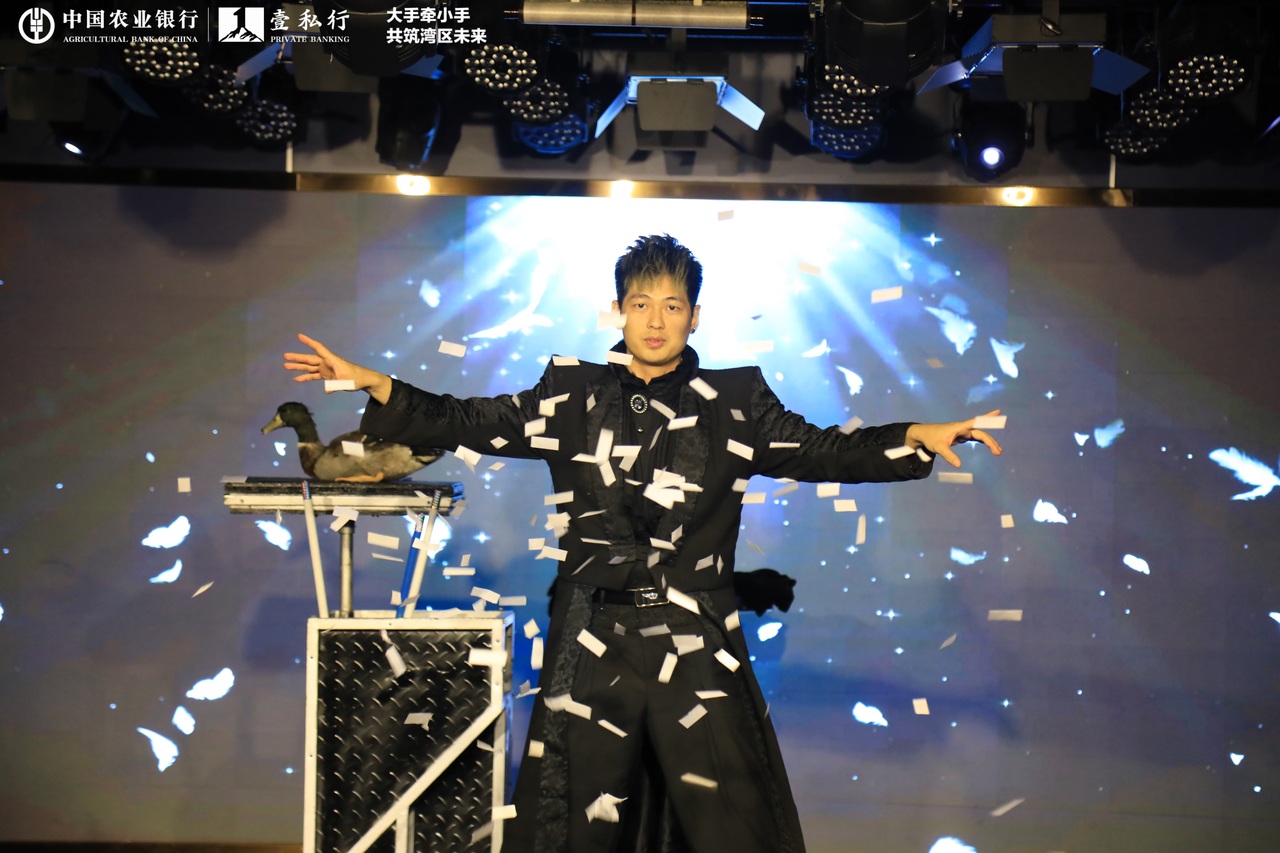 在騎鯨劇場里,奇幻魔術(shù)秀環(huán)節(jié),來自農(nóng)業(yè)銀行的小朋友被抽中上臺,與魔術(shù)師共同感受魔術(shù)的魅力。