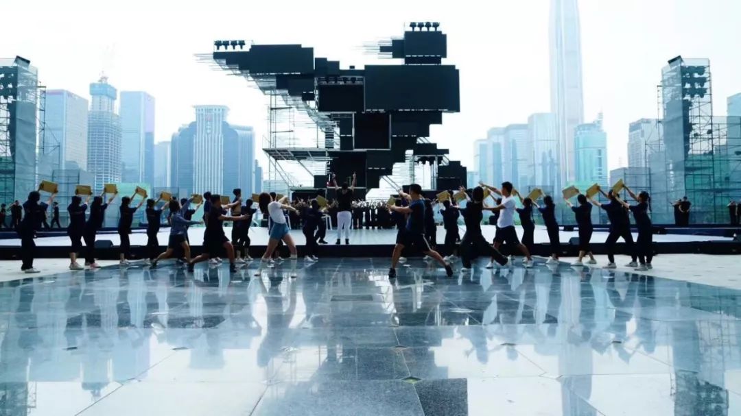 主題曲《新的一天》整首歌以小見大,用年輕上班族的拼搏精神體現(xiàn)深圳人共性,引領(lǐng)時代進(jìn)步潮流?!? 拒絕空想冒險/誰不渴望明天/有夢就要實(shí)現(xiàn) ”,交織的夢想成就了深圳?!? 新的一天就在眼前/我的命運(yùn)我要自己改變 ”,改革開放賦予了這個時代勇敢堅(jiān)持的精神。為了排演這個節(jié)目,導(dǎo)演卓依·馬可尼利和全體演員歷經(jīng)了一個月的排練,克服了演出場地露天的高溫,在整個節(jié)目近五分鐘的時長里,展現(xiàn)了新時代青年對于工作的拼勁與堅(jiān)韌、活力和激情,彰顯了剛?cè)嵯酀?jì)、自強(qiáng)不息的深圳精神。