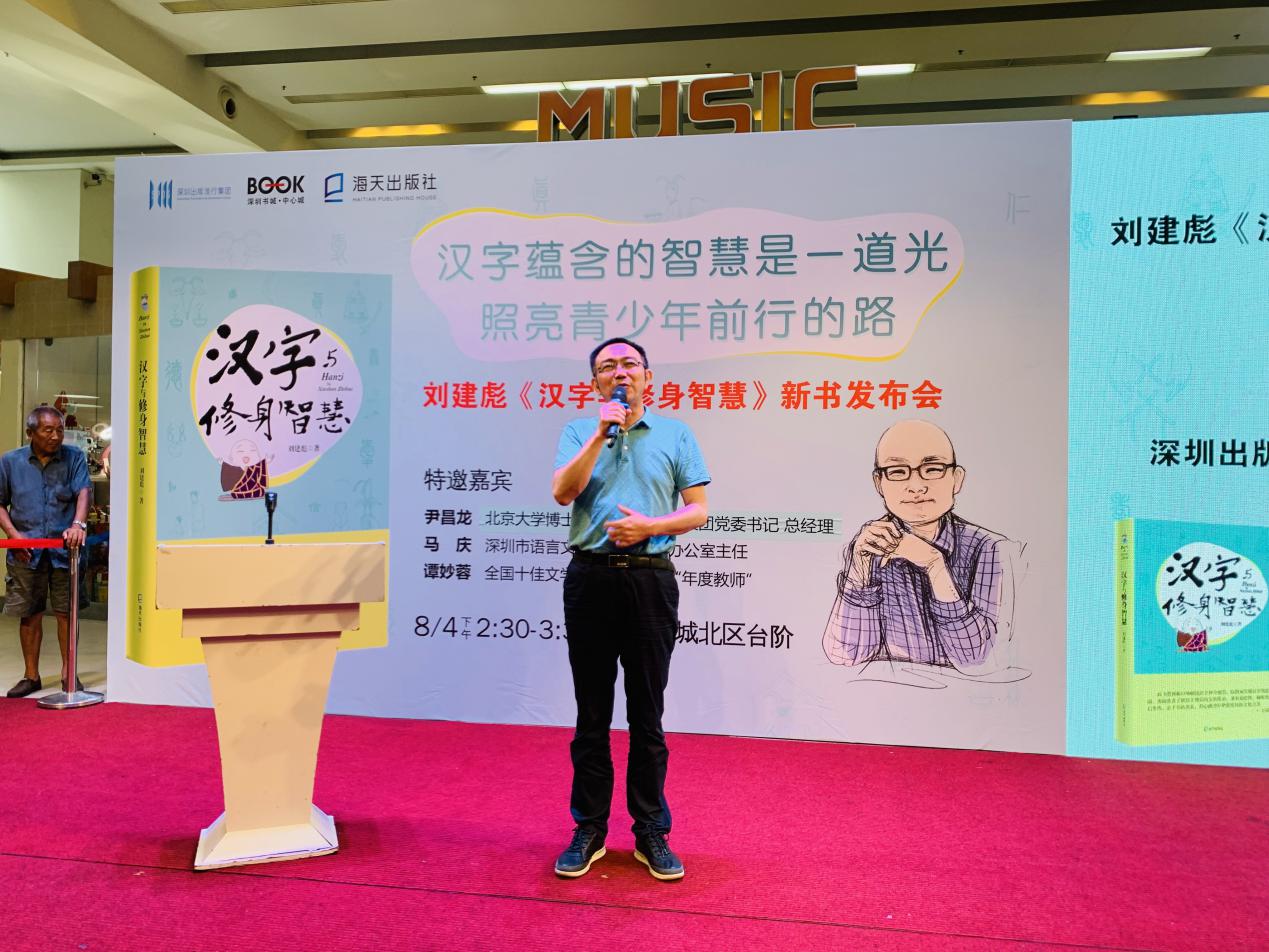 深圳新聞網(wǎng)訊 8月4日下午,壹讀書(shū)會(huì)創(chuàng)始人、知名閱讀推廣人劉建彪《漢字與修身智慧》新書(shū)發(fā)布會(huì)在深圳書(shū)城中心城隆重召開(kāi),本次活動(dòng)由海天出版社和深圳書(shū)城中心城共同舉辦,北京大學(xué)文學(xué)博士、深圳出版發(fā)行集團(tuán)黨委 書(shū)記、總經(jīng)理尹昌龍,深圳市語(yǔ)言文字工作委員會(huì)辦公室主任馬慶,全國(guó)十佳文學(xué)教師、福田區(qū)“年度教師”譚妙蓉三位嘉賓蒞臨現(xiàn)場(chǎng)并致辭。本次新書(shū)發(fā)布受到市民的熱烈追捧,活動(dòng)開(kāi)始前中心書(shū)城北區(qū)臺(tái)階、過(guò)道以及走廊或坐著或站著翹首以盼的閱讀愛(ài)好者。