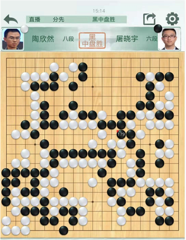 第三臺,陶欣然執(zhí)白負(fù)屠曉宇。開局左下角形成流行的大型變化,結(jié)果大致兩分局面。右上角黑棋103行棋次序失誤,但是白棋106沒有把握住在黑空里面斷一個出棋的好機會之后,黑稍好。白中央114與黑互相破空急躁,導(dǎo)致局面惡化。最終白棋破釜沉舟選擇舍棄中央殺黑右下角,轉(zhuǎn)換后依然白棋敗勢遂認(rèn)負(fù)。
