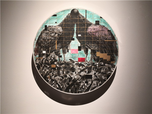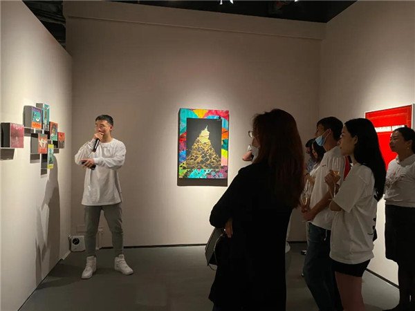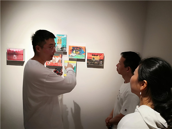 聯展現場三位作者向參觀者介紹創(chuàng)作經歷及畫作意蘊。