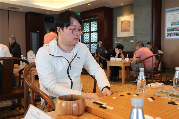 二臺主將申旻俊執(zhí)白對陣楊鼎新。右邊戰(zhàn)斗黑棋有所失誤,白棋局面大好。后來黑棋頑強(qiáng)追趕,最終還是白棋以最小優(yōu)勢1/4子獲勝。