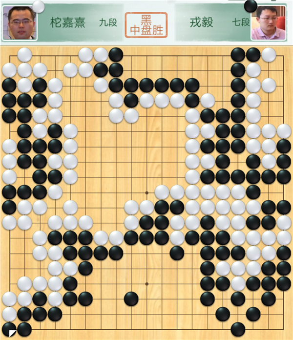 不過,接下來喜訊再次傳來:戎毅快棋執(zhí)黑贏了世界冠軍柁嘉熹。深圳龍華隊(duì)至此奠定勝局,至少是2:2主將勝,拿兩分。這一局,中盤時(shí)白棋在中央尋求作戰(zhàn),黑棋正面應(yīng)對則局面有利。實(shí)戰(zhàn)黑棋避戰(zhàn)搶占右邊,中央白棋先動(dòng)手后白棋領(lǐng)先。但在之后官子爭奪戰(zhàn)中,白棋失誤頻頻,黑棋遂幸運(yùn)小勝。