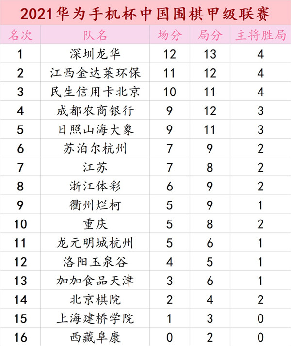 賽程預(yù)告:2021華為手機(jī)杯中國圍棋甲級(jí)聯(lián)賽常規(guī)賽第五輪浙江體彩隊(duì)VS深圳龍華隊(duì)