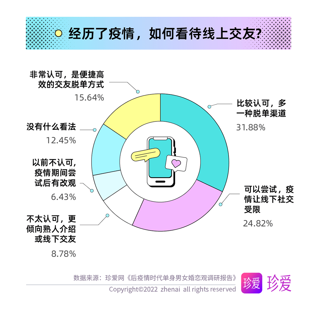 讀特客戶端·深圳新聞網(wǎng)2022年6月14日訊(記者 葉梅)疫情讓人們的生活狀態(tài)、工作方式和個人習慣都發(fā)生了顯著變化,而對單身人群而言,疫情三年他們對感情的態(tài)度又有哪些改變?現(xiàn)在的他們?nèi)绾慰创H密關系?珍愛網(wǎng)聚焦后疫情時代單身人群的婚戀觀發(fā)起調(diào)研,探究疫情期間單身人群在戀愛期待、擇偶標準、脫單難度等方面的變化。本次調(diào)研共回收問卷9862份。