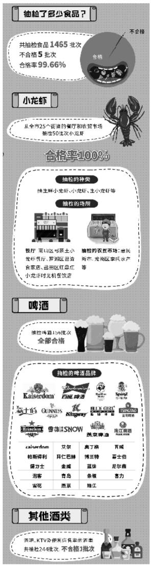 作為應季食品,又是“網紅”食品,小龍蝦食品安全情況受到市民廣泛關注。專項行動共抽檢小龍蝦50批次,產品全部合格,合格率100%。