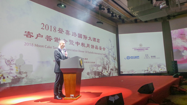 活動開始,登喜路國際大酒店總經(jīng)理譚志堅先生為晚會致辭。譚先生希望借此次品鑒會,讓來賓對登喜路月餅有全新的認識,更衷心的希望,在這次晚宴上彼此能夠進行深入溝通,增進互信,加強合作,共敘友誼,共謀發(fā)展!