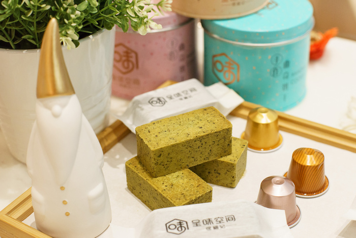 除了這款奶黃流心酥,徐福記實體品牌體驗店——呈味空間主打的現(xiàn)烤手工鳳梨酥還有多種口味,有經(jīng)典原味/蔓越莓/馥香烏龍茶/相思抹茶/玫瑰口味供君任選。每款鳳梨酥的誕生都來之不易,從材料制作、烘焙、出爐都要經(jīng)過糕點師傅的精心手工打磨。花費15種原料,經(jīng)過11道工序,連各種用料配比都要精確到克才實現(xiàn)一塊鳳梨酥的誕生,看得出這塊不普通的鳳梨酥“出生“有多矜貴。而且原材料都是精心挑選的清甜細膩陽光土鳳梨,通常10個才有一個符合要求,制作一盒就至少需要整整20個。反復打磨鳳梨的果肉,再熬制成細膩的、富有纖維感的果餡,絲絲纖維口感,一口下去,滿滿鳳梨果肉,瞬間得到視覺與味蕾的雙重滿足。特別一提的還有制作鳳梨酥的糖,不是普通的白砂糖,而是健康而且低熱量的 “海藻糖”,簡直是為擔心發(fā)胖問題的吃貨們帶來的福音。只有10天保質(zhì)期的美味,吃貨們不用半個鐘就能解決了哈哈。