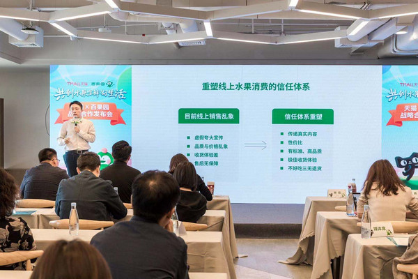 見圳客戶端·深圳新聞網(wǎng)2019年11月30日訊 11月29日,天貓與百果園在深圳阿里中心舉行戰(zhàn)略合作發(fā)布會,天貓大食品總經(jīng)理無齡、大食品果蔬冰運(yùn)營負(fù)責(zé)人思豪,百果園集團(tuán)副總裁焦岳、電商負(fù)責(zé)人孫鵬出席會議并發(fā)表演講。本次發(fā)布會以“共創(chuàng)水果生鮮好生活”為主題,雙方計劃通過優(yōu)勢互補(bǔ)和資源整合,從水果到生鮮進(jìn)行全面深入的戰(zhàn)略合作。
