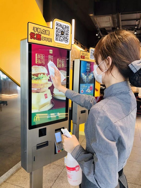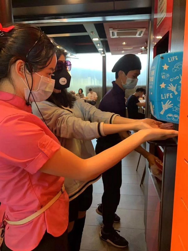 目前全國(guó)所有的麥當(dāng)勞餐廳啟動(dòng)上班員工測(cè)溫流程,并提高員工洗手消毒頻次,全國(guó)餐廳全員佩戴口罩。在餐廳為顧客提供免洗洗手液,對(duì)所有餐廳的通風(fēng)系統(tǒng)和顧客常接觸的設(shè)施,強(qiáng)化消毒并增加頻次,包括大門把手、自助點(diǎn)餐屏、樓梯扶手、柜臺(tái)臺(tái)面、取餐區(qū)、桌椅、餐盤、兒童椅、兒童樂園等。