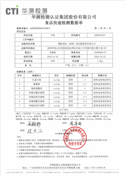 蛙來噠創(chuàng)始人羅清表示:對于食品安全管理,蛙來噠嚴(yán)格要求牛蛙來貨供應(yīng)商,每批來貨提供合格的第三方檢測報(bào)告,經(jīng)歷2019年10月的抽檢之后,我們增加了來貨后的再一次第三方送檢,并保證每批貨都送檢,以此保證食品安全質(zhì)量,并將繼續(xù)升級自我檢測標(biāo)準(zhǔn)。