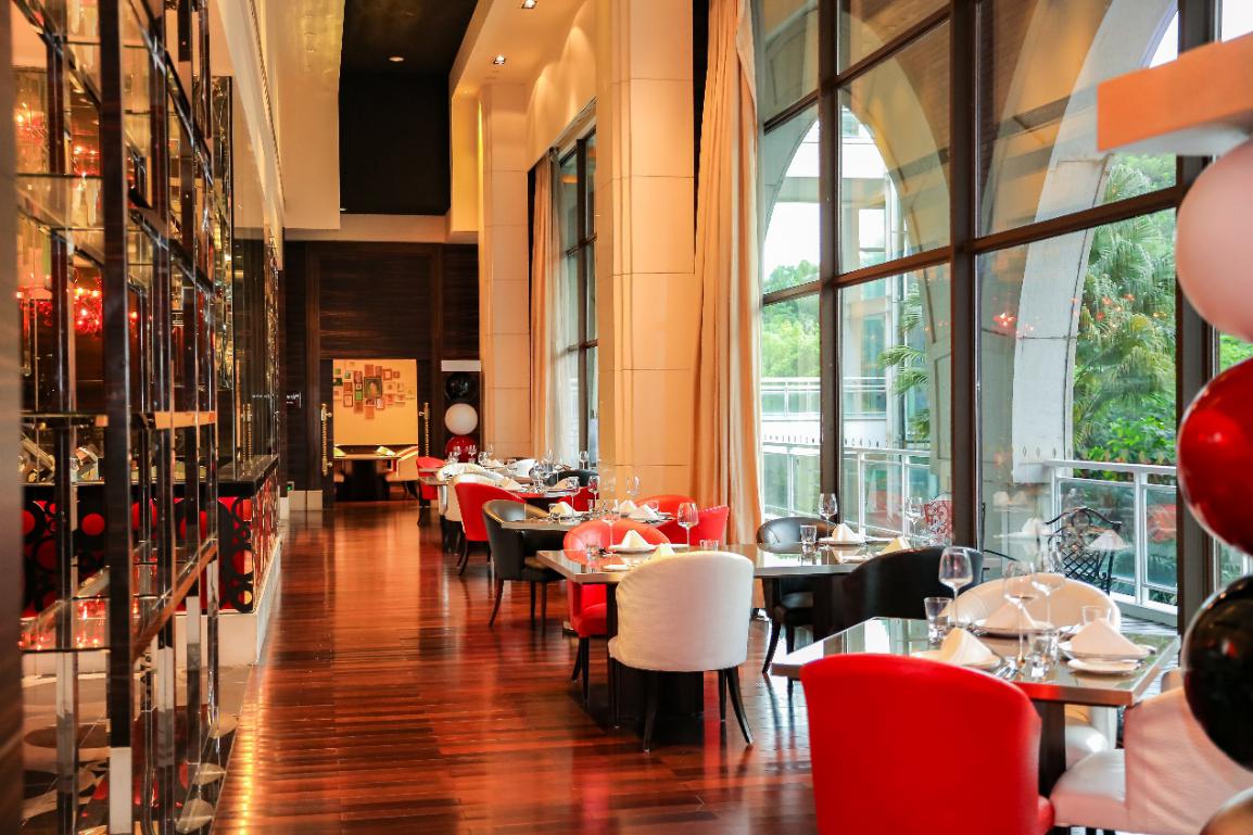 Pipette Bistro法國餐廳極具藝術(shù)氣息的前沿設(shè)計(jì)與美食佳釀相映成趣,挑高的就餐空間,搭配開放式廚房,讓就餐體驗(yàn)更為靈動(dòng)。隨處可見的環(huán)形裝飾設(shè)計(jì)理念來源于法國香檳中肆意跳動(dòng)的氣泡,Pipette Bistro對精致的追求從廚房里那套紅色的“法拉利”廚具可見一斑,純手工鍛造的歐洲廚房頂級品牌Molteni烹飪爐具,來自法國普羅旺斯,特殊的材質(zhì)可以把熱度傳到臺面每個(gè)角落。除了開放用餐區(qū),五間主題貴賓包房在黑白兩色的基礎(chǔ)上,裝飾風(fēng)格添加暖色基調(diào),圖書館、香檳房、拿破侖、紅酒房和拉圖房將私密用餐提升到新高度,拉圖房由聞名世界的Chateau Latour酒莊和華僑城洲際大酒店聯(lián)手打造,房間里珍藏了Latour地圖、量酒器、書籍以及由Latour總裁給酒店的一封祝賀信。