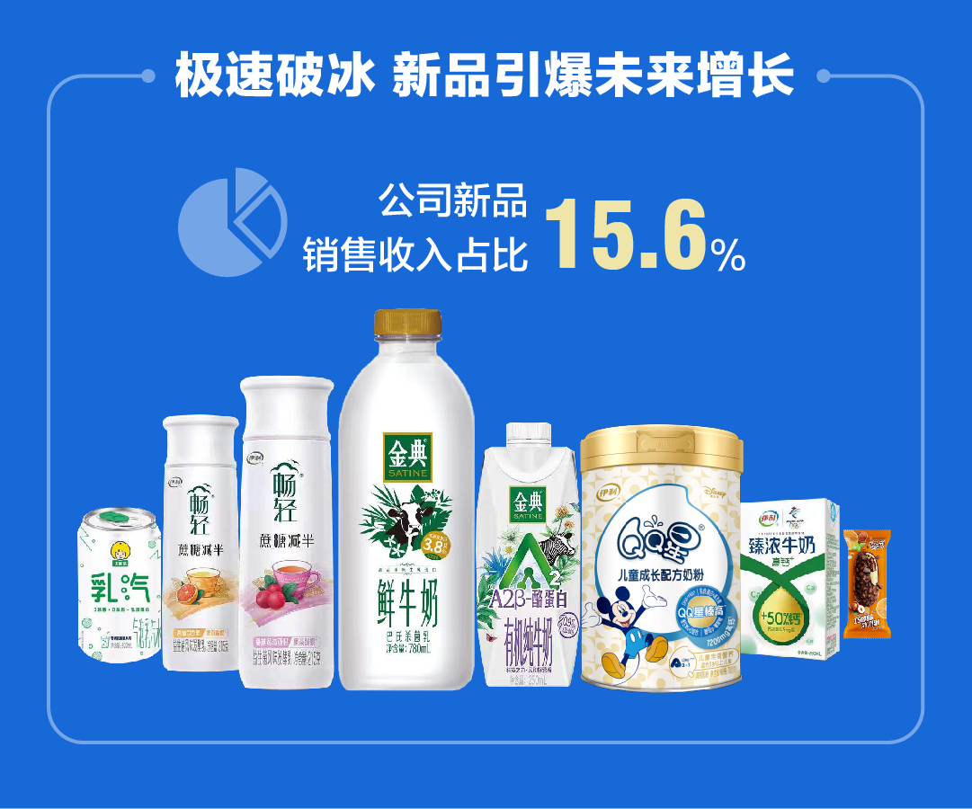 另外,伊利還推出了優(yōu)酸乳“乳汽”氣泡乳、TOORAN來(lái)襲黑奶粉、“QQ星”兒童成長(zhǎng)配方羊奶粉等健康營(yíng)養(yǎng)新品,這些能夠滿足消費(fèi)者健康和品質(zhì)生活所需的產(chǎn)品,是伊利對(duì)消費(fèi)者信賴的真誠(chéng)回饋。伊利中報(bào)顯示,公司新品銷售收入占比15.6 %,已經(jīng)成為公司業(yè)績(jī)?cè)鲩L(zhǎng)的新生力量。