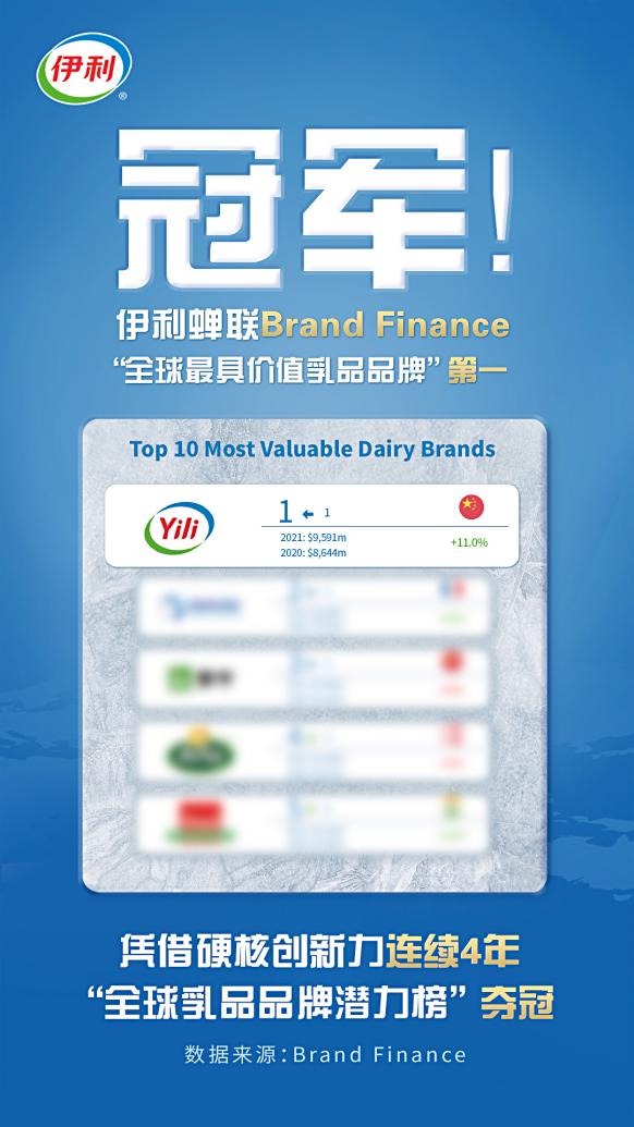 伊利為消費(fèi)者的傾力付出得到了越來(lái)越多消費(fèi)者的認(rèn)可,在全球的品牌價(jià)值也日益凸顯。在國(guó)際權(quán)威品牌價(jià)值評(píng)估機(jī)構(gòu)Brand Finance發(fā)布的榜單中,公司更是蟬聯(lián)“全球最具價(jià)值乳品品牌10強(qiáng)”第一名,并連續(xù)4年在“全球乳品品牌潛力榜”中奪冠。
