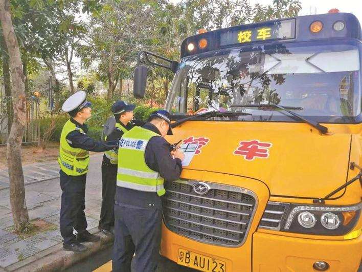 深圳交警表示,校車(chē)安全無(wú)小事,開(kāi)學(xué)季將對(duì)校車(chē)涉及無(wú)牌無(wú)證、假牌套牌、報(bào)廢、拼裝、超載、超速、不按規(guī)定投保、未噴涂放大牌號(hào)、逾期未檢驗(yàn)各類(lèi)交通違法行為進(jìn)行嚴(yán)厲查處。(記者 陸洋 實(shí)習(xí)生 崔婉楠 通訊員 張藝/文、圖)