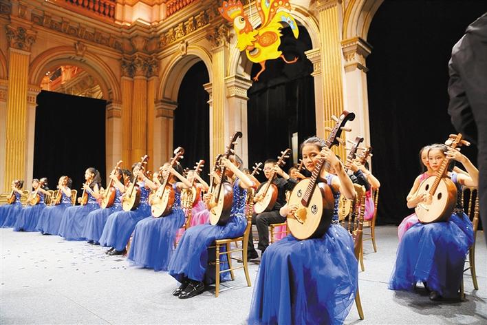 ●2017年2月,受巴黎市政廳邀請,少兒阮樂團(tuán)赴法國參加新年晚會,轟動歐洲,成為國內(nèi)第一支受邀在巴黎市政廳演出的少兒阮樂團(tuán),接受駐法大使翟雋和巴黎市長的親切接見。