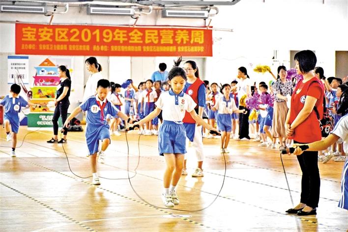 寶安日?qǐng)?bào)5月21日訊 你每天運(yùn)動(dòng)夠60分鐘了嗎?每天都有吃蔬菜水果嗎?如今,已有越來越多的人重視營(yíng)養(yǎng)、運(yùn)動(dòng)與人體健康的關(guān)系,每年的5月20日是中國(guó)學(xué)生營(yíng)養(yǎng)日,今年的主題是“營(yíng)養(yǎng)+運(yùn)動(dòng),攜手護(hù)視力”。5月20日下午,寶安區(qū)2019年全民營(yíng)養(yǎng)周暨“5·20”中國(guó)學(xué)生營(yíng)養(yǎng)日在石巖湖學(xué)校舉行。