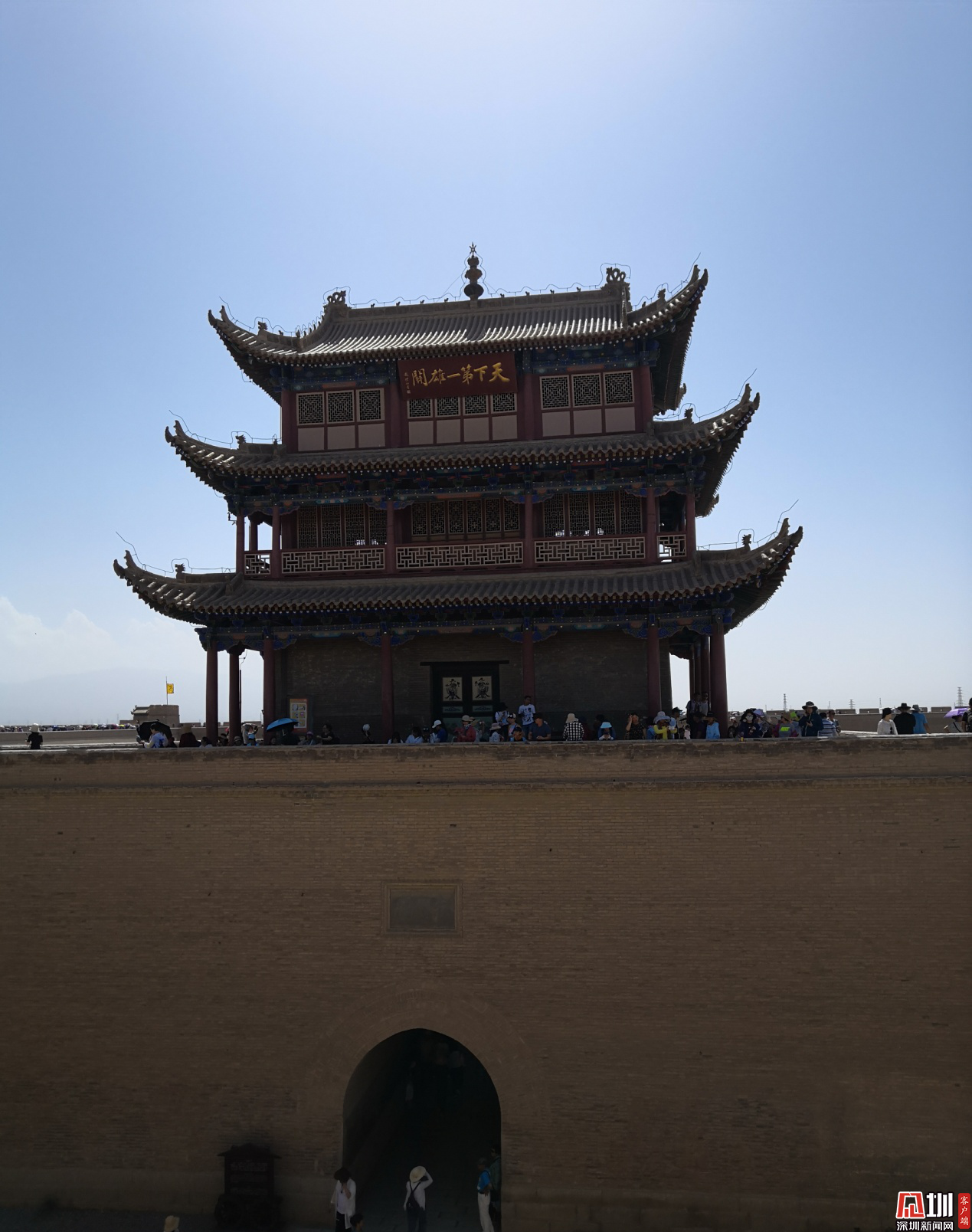 嘉峪關(guān)景區(qū)主要是關(guān)城和看不了的露天長城,至于期待的長城第一墩和懸壁長城則在較遠(yuǎn)的地方。嘉峪關(guān)在后期歷代保護(hù)上明顯比陽關(guān)幸運(yùn)許多。我們還能看到修復(fù)后的甕城、角樓、戲臺(tái)、光化樓等,是比較完整的關(guān)隘了。這么大的規(guī)模的關(guān)口和“甕中捉鱉”、易守難攻的設(shè)計(jì),放在今天也算是雄樓了。而且嘉峪關(guān)赫赫有名,門票費(fèi)用和游客數(shù)目成正比。相比之下,陽關(guān)遺址滄桑許多。大沙丘上,一塊大石碑、幾塊黃土磚似的遺跡、面目全非的烽燧,放眼望去盡是戈壁、黃沙、強(qiáng)光、大風(fēng)。