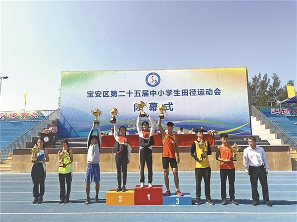 ▲沙井中學高中組蟬聯(lián)寶安區(qū)第二十五屆田徑運動會團體總分第一名。