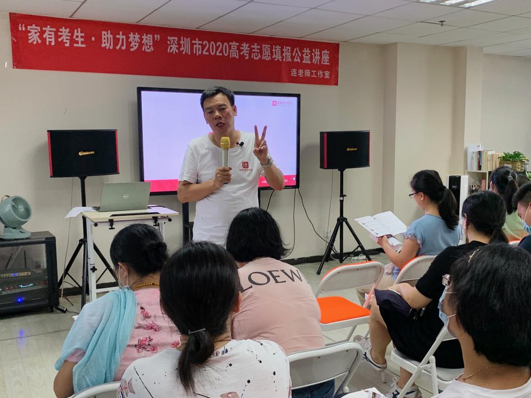 為了幫助深圳市廣大高考學子填出理想志愿,粵港澳高等教育研究中心主辦,連老師工作室承辦的2020“家有考生,助力夢想”高考志愿填報公益講座持續(xù)半個月,共計5場講座(其中線下4場,線上1場)。公益講座全部由生涯規(guī)劃視角下的高考志愿填報模型研發(fā)者、被業(yè)內譽為廣東省最牛高考志愿規(guī)劃師的連德敏博士主講。