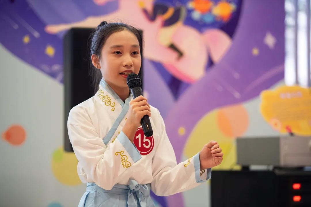在甘坑社區(qū)廣場(chǎng),現(xiàn)場(chǎng)早早搭起了舞臺(tái),來(lái)自甘李學(xué)校的17名優(yōu)秀古詩(shī)詞愛好者躊躇滿志、躍躍欲試,甘坑社區(qū)黨委副書記魏阿妮親自擔(dān)任活動(dòng)主持人,選手們輪番上場(chǎng),為評(píng)委及社區(qū)居民呈現(xiàn)了一場(chǎng)精彩的文化活動(dòng)。