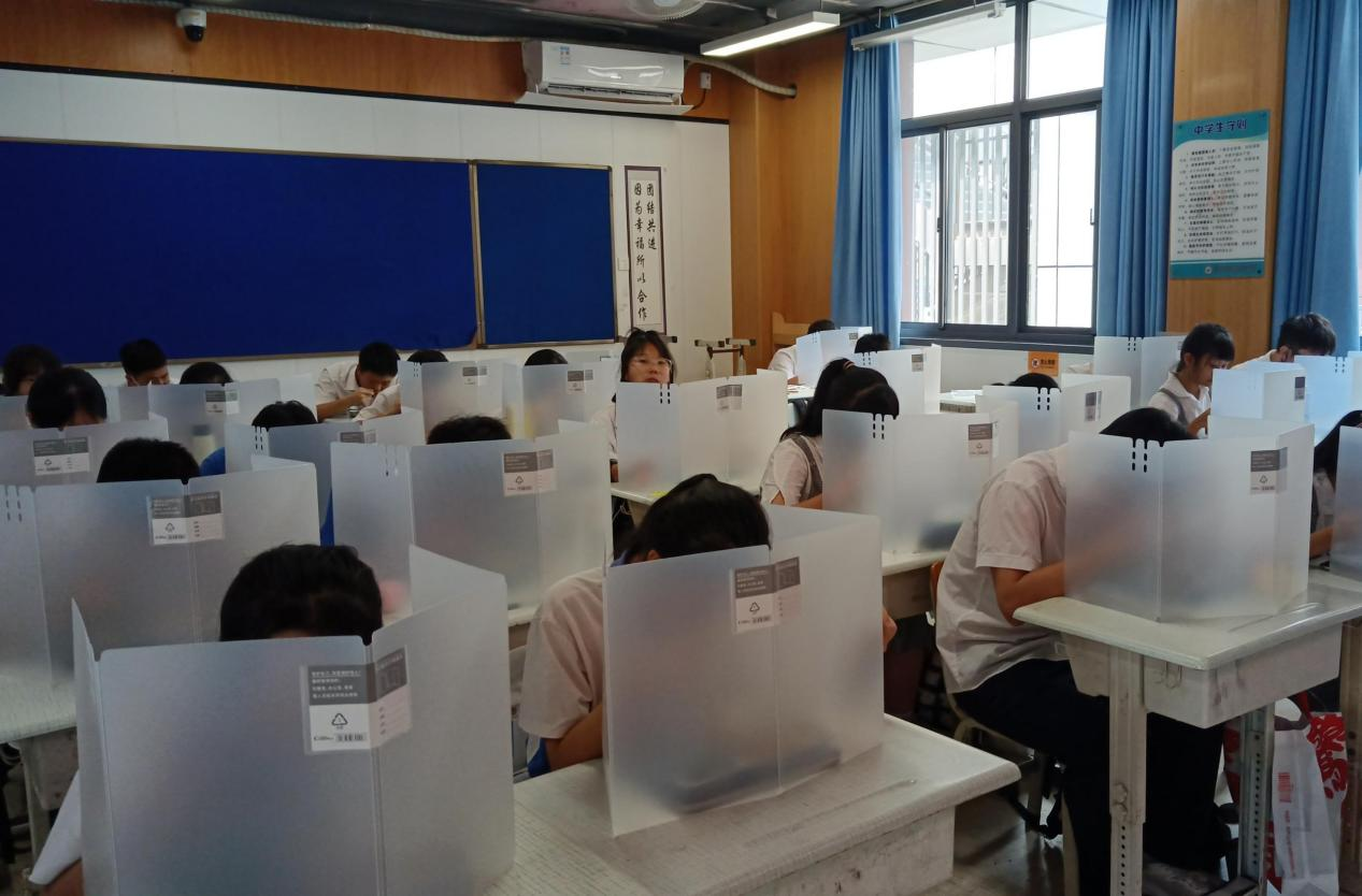 皇崗創(chuàng)新實(shí)驗(yàn)學(xué)校給每一位同學(xué)都發(fā)放了擋板,讓學(xué)生們就餐衛(wèi)生又安心。(皇崗創(chuàng)新實(shí)驗(yàn)學(xué)校供圖)