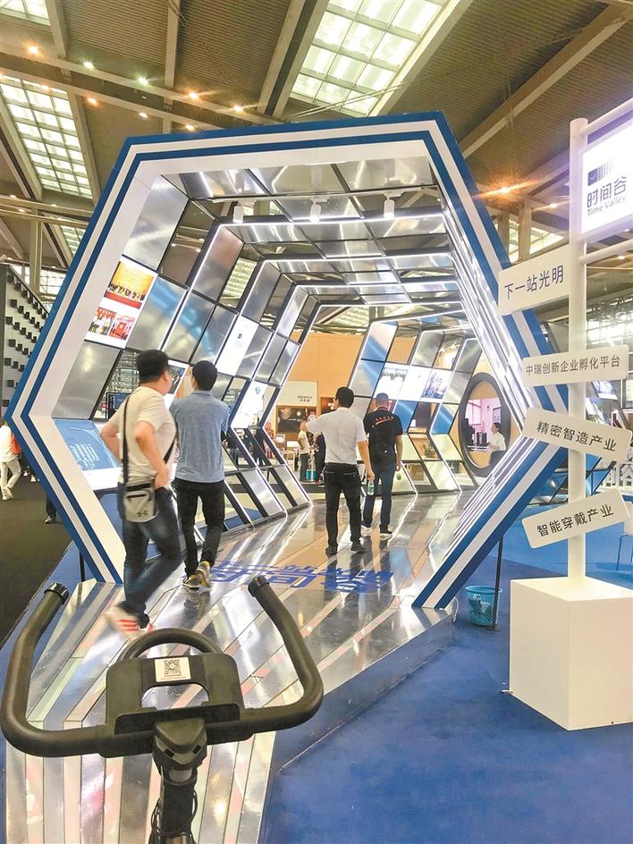 作為時(shí)尚產(chǎn)業(yè),深圳鐘表加快轉(zhuǎn)型升級(jí)。圖為深圳鐘表產(chǎn)業(yè)基地——“時(shí)間谷”在展會(huì)上亮相,吸引眾人眼球。